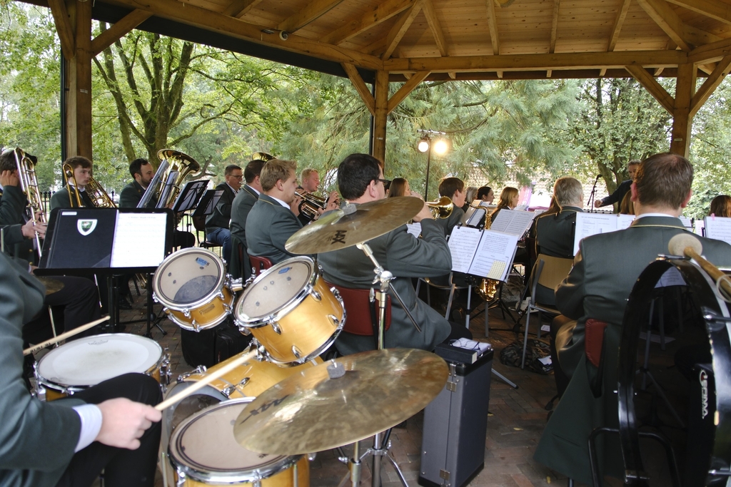 Ze doelde op de Musikkapelle Berkeldörfer uit het Duitse Ellewick. Het bijna 40 mannen en vrouwen sterke orkest onder leiding van de van oorsprong Nederlandse dirigent Ben Cruiming verzorgde met een gevarieerd repertoire met onder meer marsen en polka’s een Frühschoppen. Mit Bier und Bratwurst, zoals de rijke Duitse traditie van het Frühschoppen vereist. Dat orkestleden ook kunnen zingen werd bewezen en door de vele bezoekers in het park zeer op prijs gesteld.