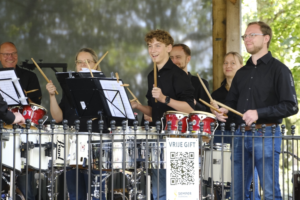 Bijna honderd bezoekers leerden zondagmiddag 14 september 2025 bij de muziekkoepel iets meer over de finesses van het slagwerk. Daarvoor zorgden de achttien leden van de slagwerkafdeling van Semper Oldenzaal.
